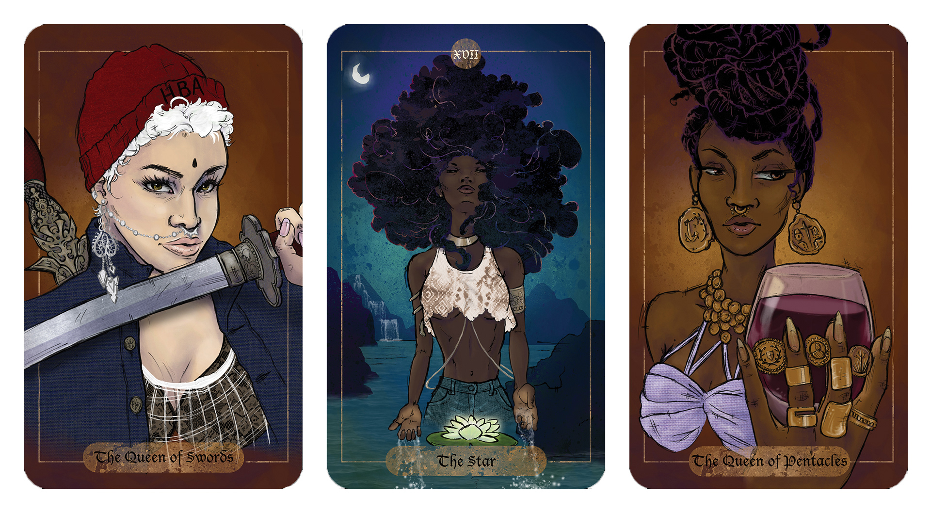 Tarot Cards. The deck features people of color and is inspired by a personal favorite, Afropunk Festival. Check out my progress on my Instagram @khalidrosemin NOT FOR SALE!